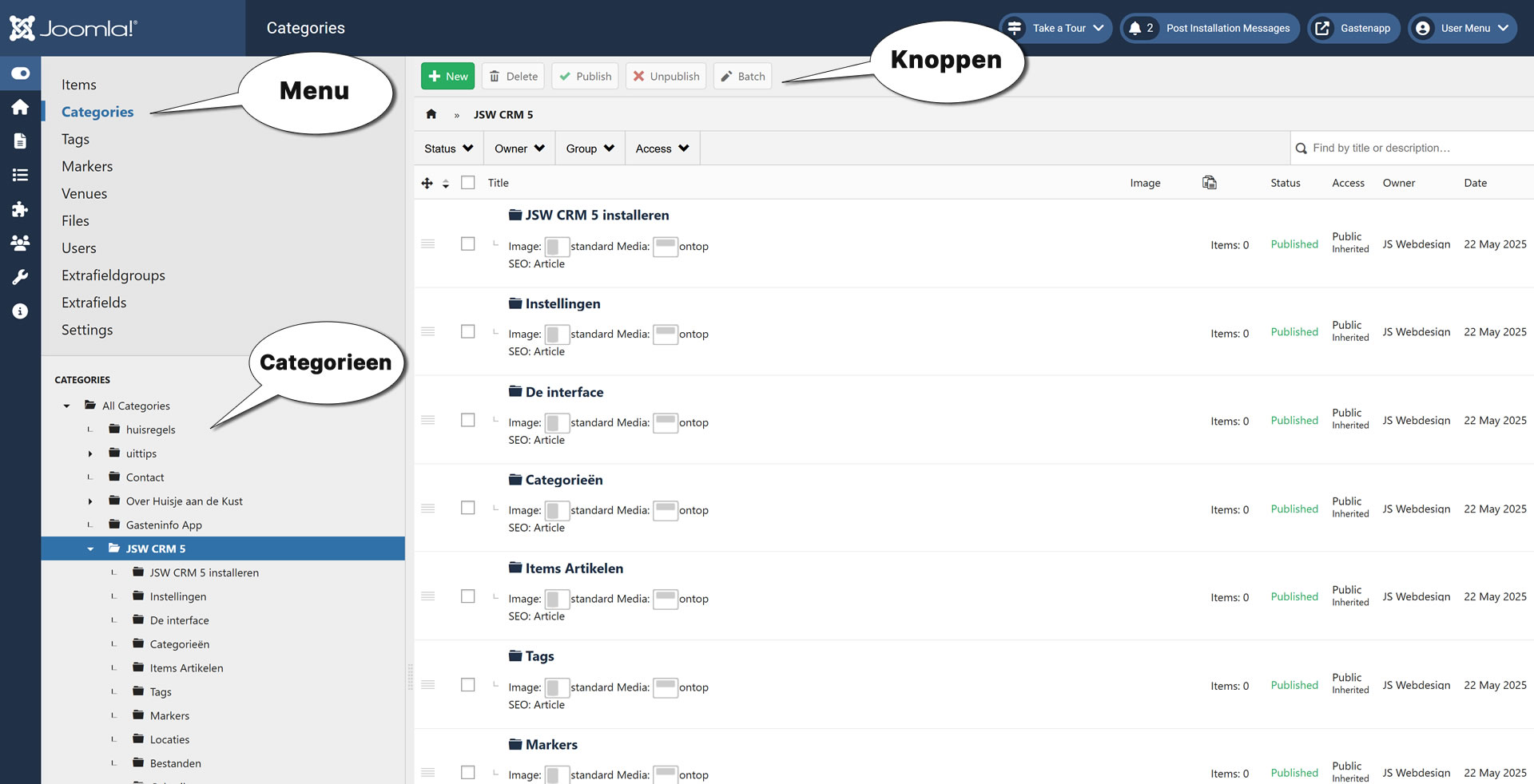 Categorieën administrator