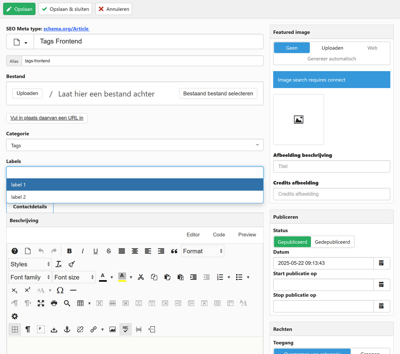 Beheer items via de Frontend